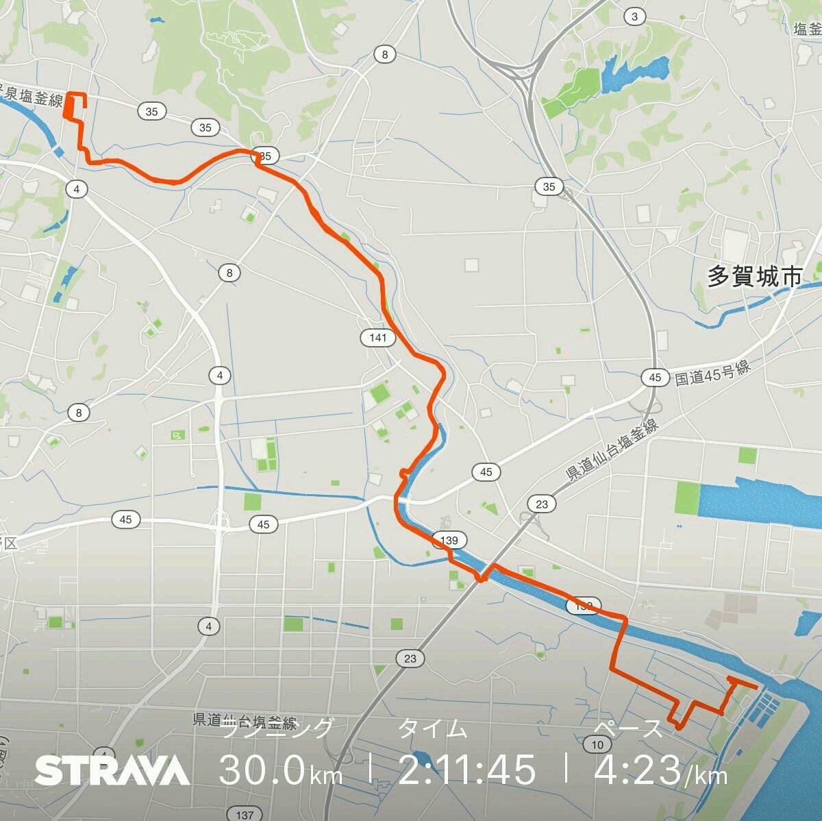 長らく出来ていなかった30km走。新たに開拓した川沿いのコースで見事成功(→ログ)。