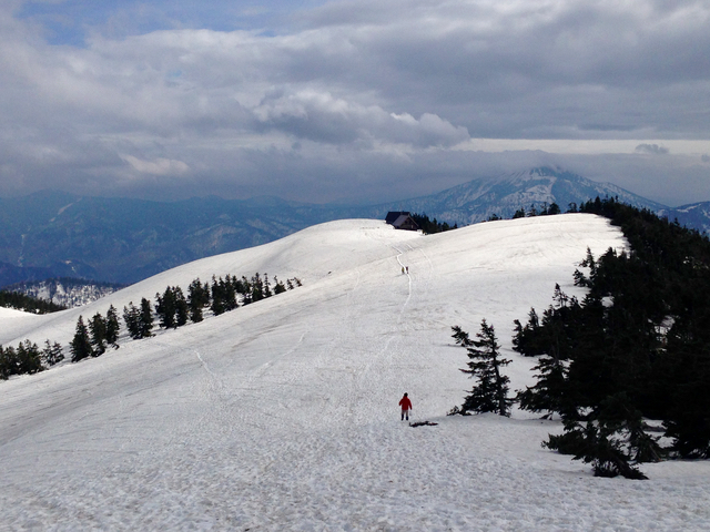 翌朝は特に起床時間は定めず、起きたら下山。夜間の低温と強風で一部雪が固く凍っていたので、軽アイゼンでやり過ごしました。下山したら登山口付近の温泉で入浴。”みんみん”の開店時間が予想外に遅かったため餃子はお預け、すき家で食事して小山駅で解散しました。