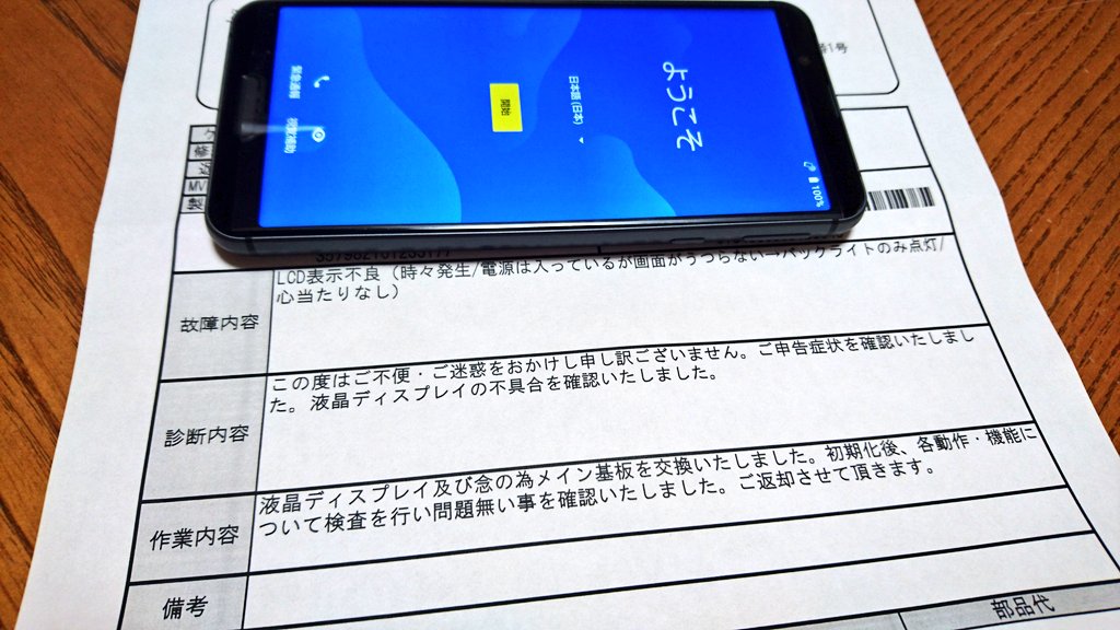 ちなみに、私のだけ、たまに液晶がうんともすんとも言わなくなり、放っておくと回復して、そんなことが3回くらいあって、完全にうんともすんとも言わなくなってしまいました。