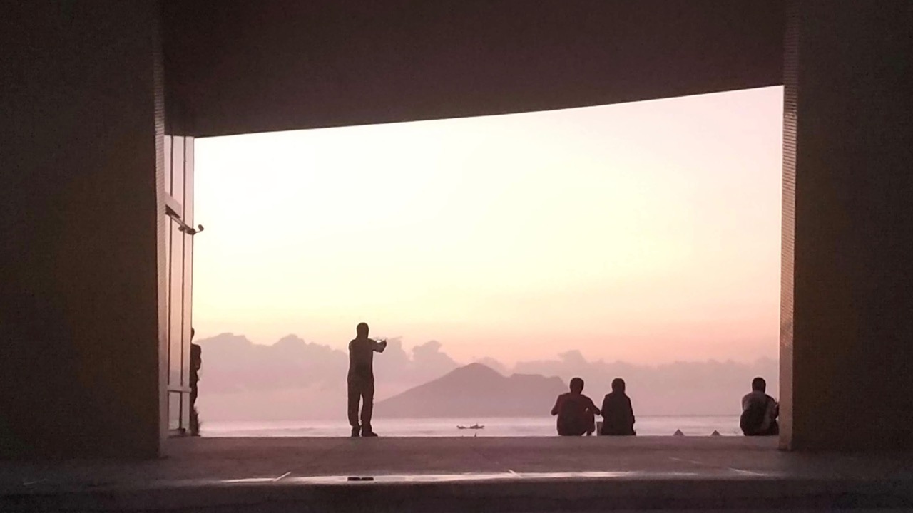 基本は海から山への日。まずは海沿い。ちょうど亀山島あたりで日の出。
