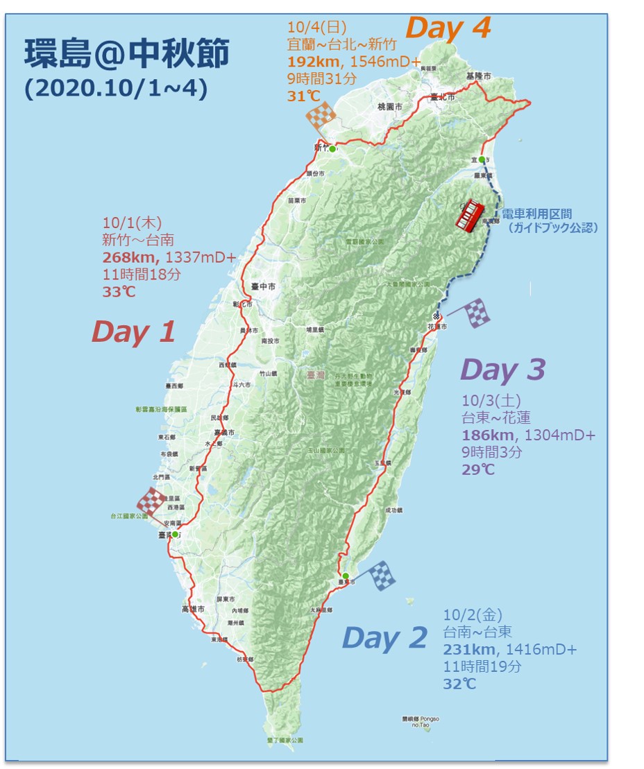 可愛い子供達と奥様が台湾アパートに到着し二週間の隔離生活も間も無く終了というところの4連休(中秋節)。自転車での台湾一周に挑戦しました。