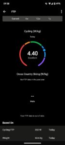 富士ヒル翌週に泉ヶ岳に登った時はガーミン検出で4.4倍(302W/68.6kg)。2、3ヶ月前からローラー台でのトレーニングを増やしていき、FTP300W設定でSST_shortや週末にThe Gorbyを行いました。