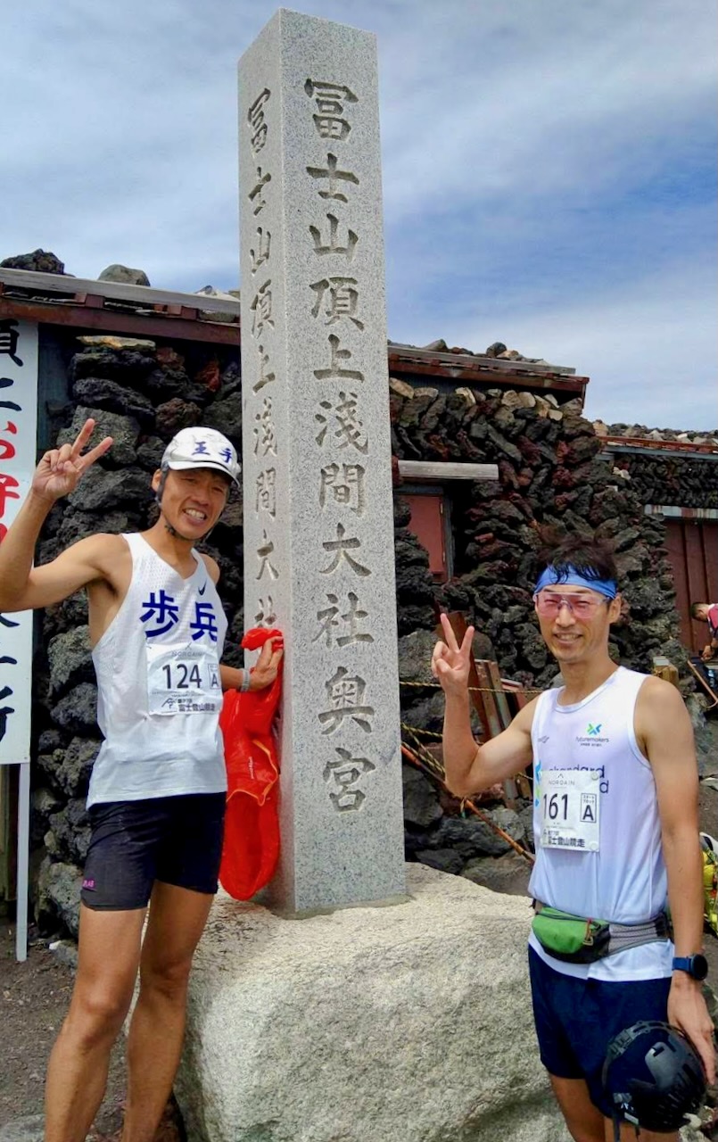山頂でフラフラしていたら、宮城のstrava友達であり、フルもウルトラも抜群に速いS村さんと遭遇し、ご挨拶。たしか直前におんたけで優勝していたとおもうけど、それでも3h10mの俊足ぶり。