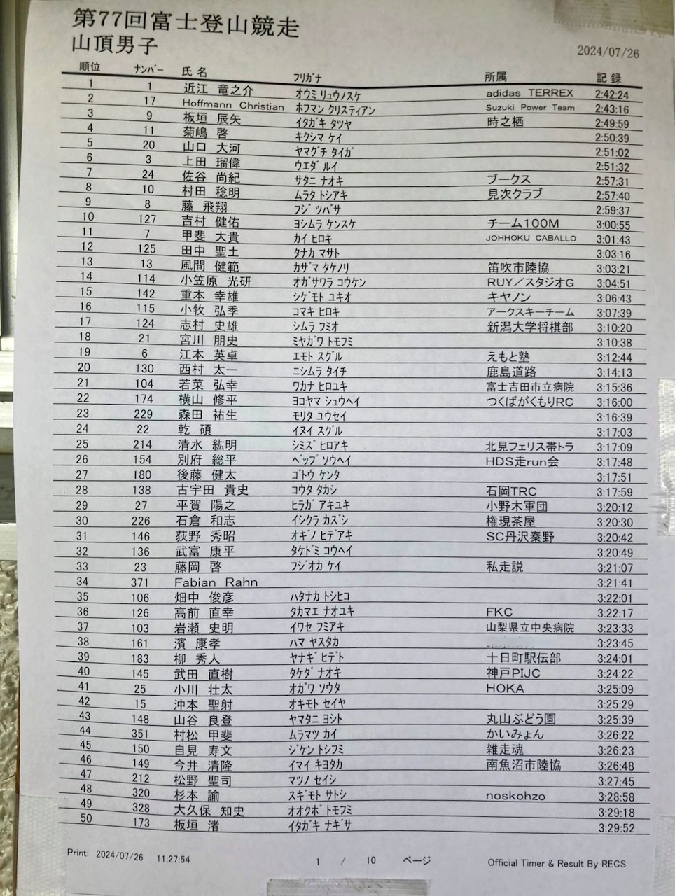 5年ぶりの登山競走。10年前の山頂コースPBを2分更新!!! 3h23m45s, 38th. (strava)