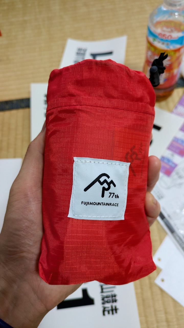 参加賞は、軽量ポータブルバッグ。富士登山競走は参加賞が面白いですが、今年は当たりかな。子供が使ってます笑