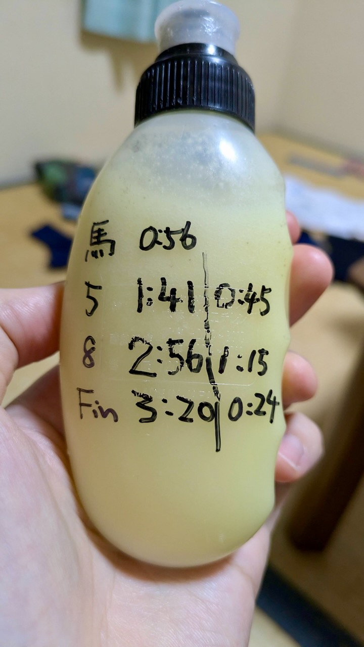 ジェルボトルに目標。ほぼ前回のを流用。レース中に見ることはありませんでした。