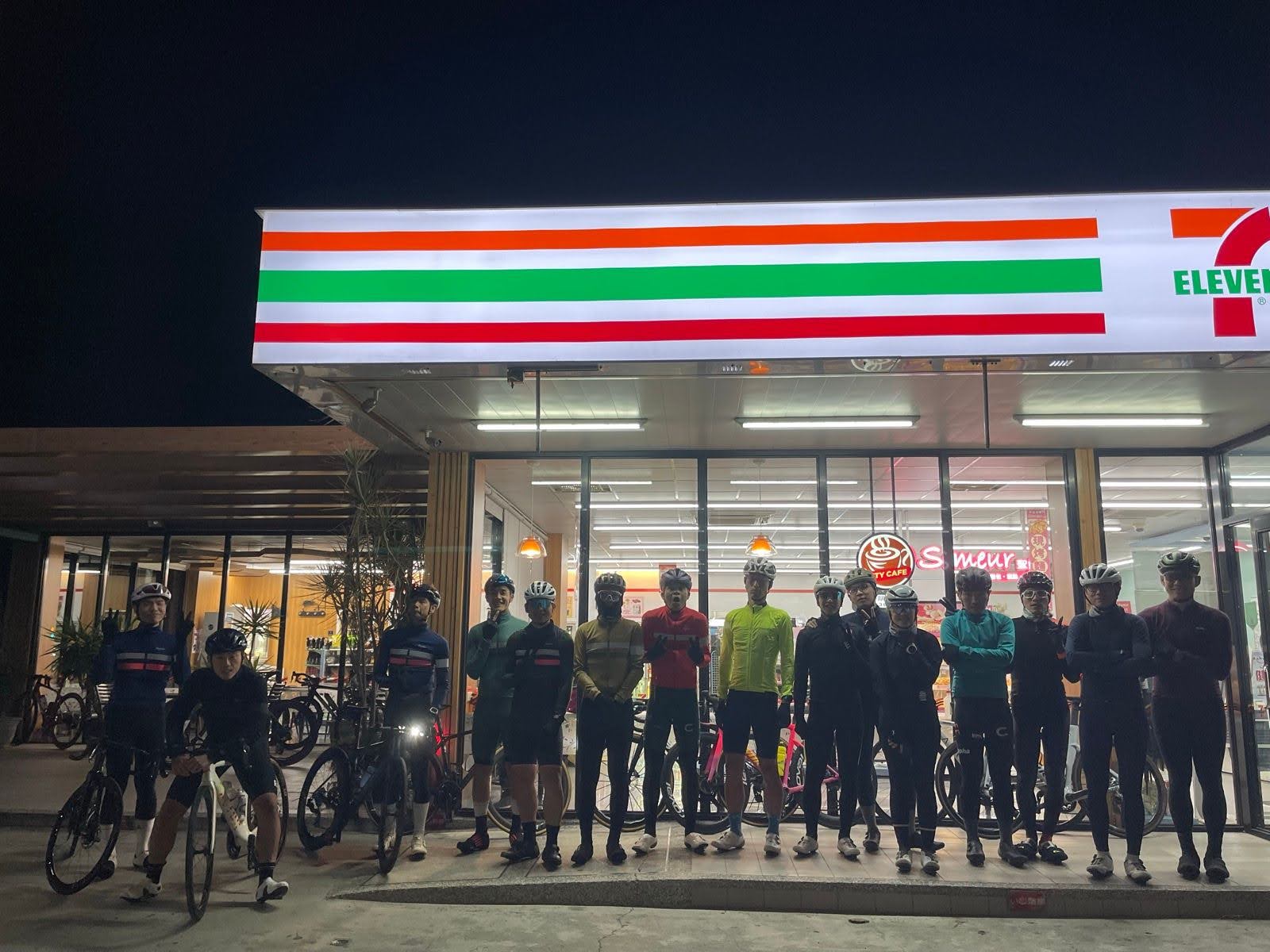 集合は香山のセブン。新竹のアパートからは10kmほど、暗い中向かいました。Rapha cycling teamのメンバーも来ていたようで、相当な人数。