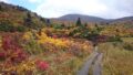 月夜見には前回から19分遅れで到着、ハイドレーションのドリンクをちょうど2L消費しきって、お守りのペットボトルの水400ccが残っている状態。この水と補給スポドリ500ccをその場で飲んで、残りの補給スポドリ1Lはハイドレーションへ。少しの間、腰をおろして固形食も摂取してから出発。しばらくいったところで、泣きっ面に蜂のコースミス。周りの選手がまばらだったのと霧が濃かったので誘導ランプを見失って巻道へ。尾根の上を選手が走っているのが見えて、一旦戻ってコース復帰。なんだかんだで10分のロス。