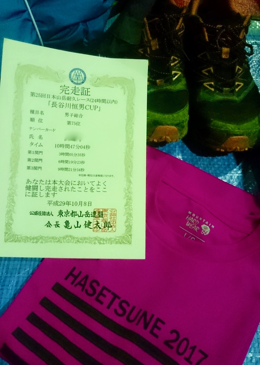 無事、完走Tシャツをゲット。1回目のリタイアとも違う、ハセツネの難しさを知った。