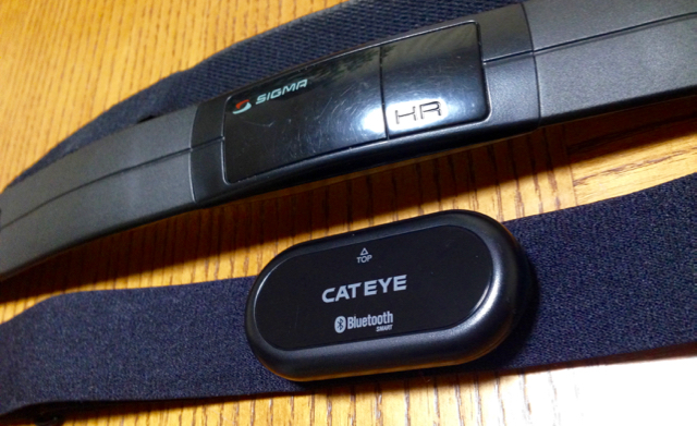 写真上のは大学の時から使っているサイコン付属のベルトで、ゴムが伸び伸びなのと、通信形式がANTでもBlutoothでも無いようで流用不可でした。Mio Linkも魅力的でしたが、今回は初期コスト優先で。