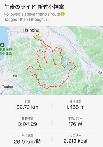 自転車(ライド)Stravaのお友達がやっていたので真似してみました。82.7km1,455Up/3時間17分。