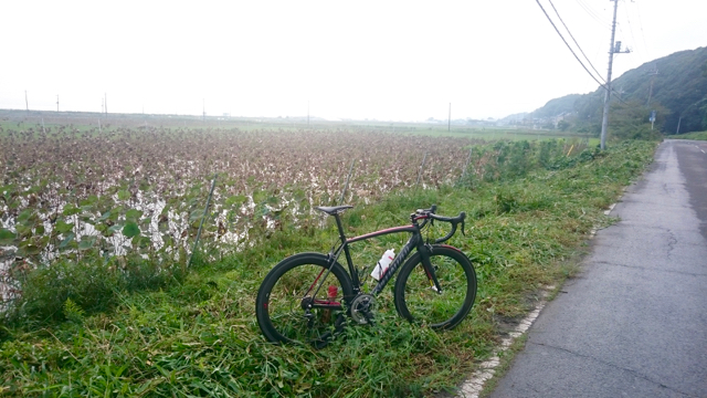 レース終了後、レンコン畑をバッグに。