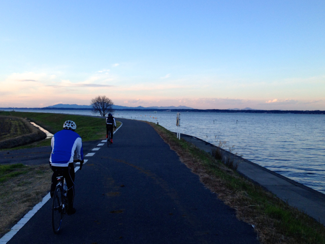 かすみがうら2周+りんりん往復のお手軽コースで311km/12時間53分(→ログ※)。1周目(〜152km)は一人で。2周目からは会社のお二人と一緒に。