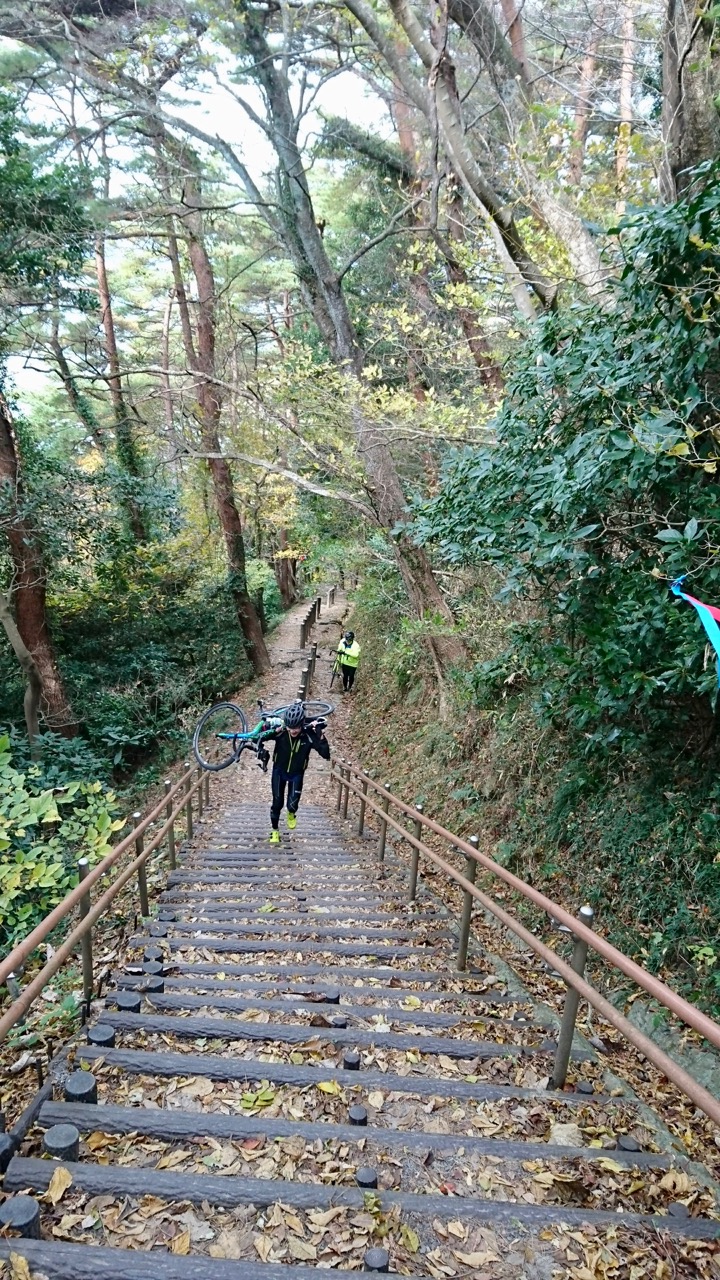 「壮観」への登り。   自転車を持ってると結構急な登りに感じる。カーボンソールがガリガリ。麓のレストランで食事。