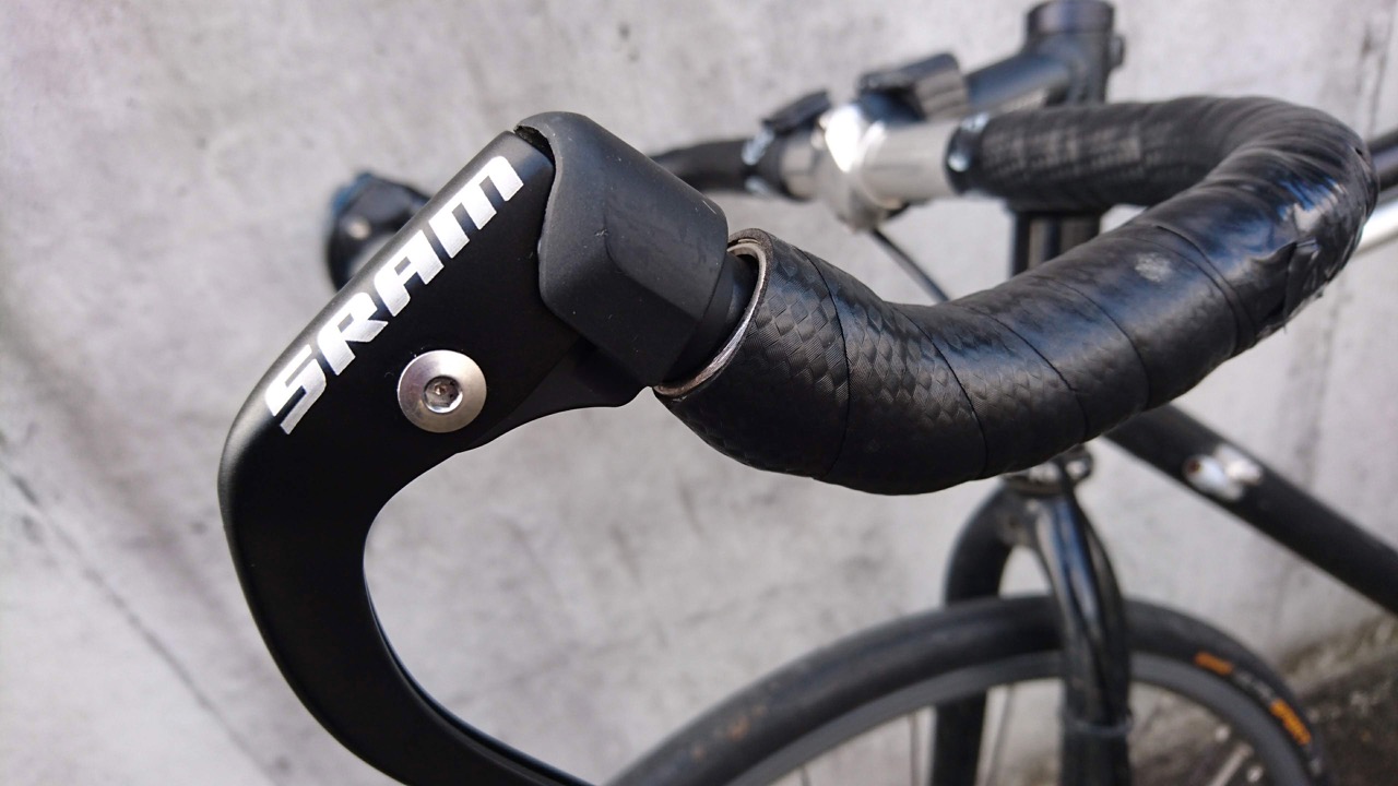 (さらにおまけ1)ついでにSRAMのかっこいいTTレバーに変えようと思ったら、このハンドルの曲げ角度ではつけられませんでした(ストレート部分がもう少し必要)。