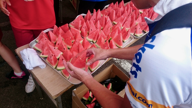 ゴール後の美味しいスイカが嬉しかった!!冷たいおしぼりももらえて、サービス良すぎだなーと笑