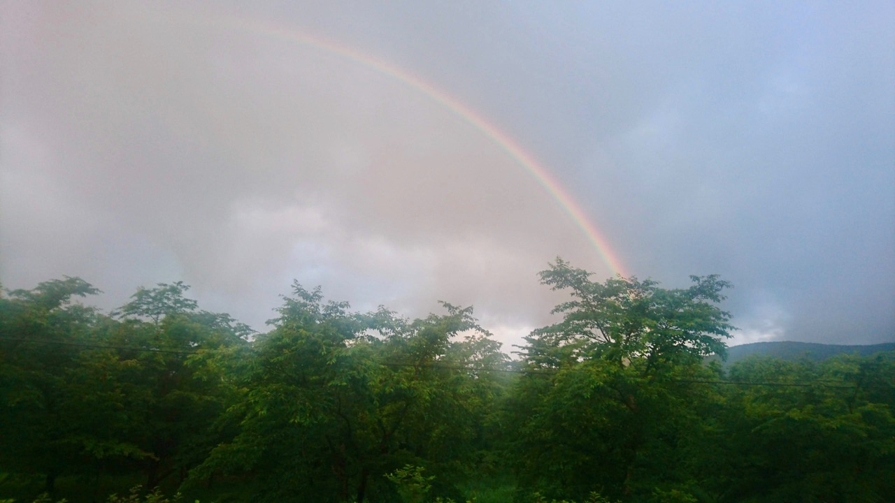 ヒーコラヒーコラとロードを登ったら、雨が止んで虹。ゲレンデ登ってる時は晴れ間も少し。