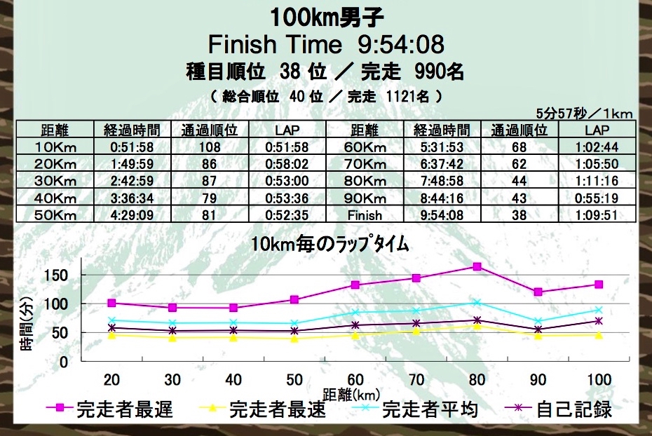 100km/9時間54分8秒、38位/出走1953人(100km男子)。