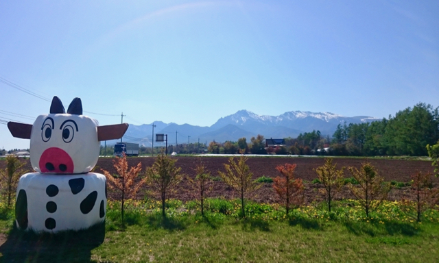 野辺山といえば、牛ダルマ(中は牧草)と八ヶ岳。絵になるー。