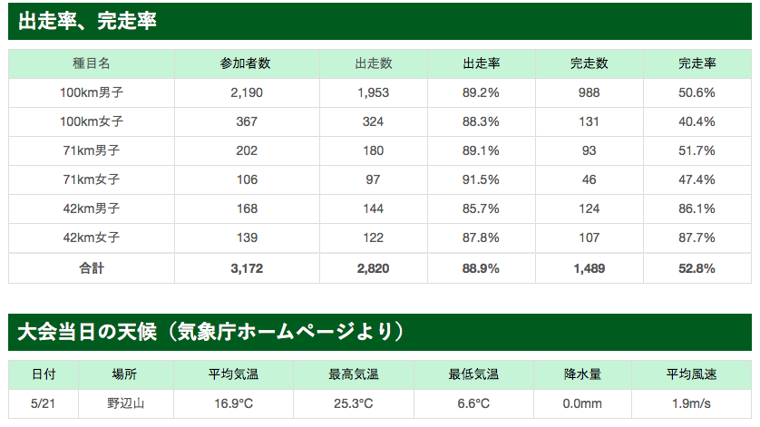 気温が上がったこともあり、男子100kmの完走率はギリギリ50%。さすが、ウルトラ界の東の横綱。