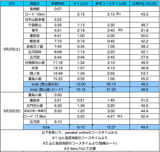 広河原峠から広河原への下りは、ソールが減っているせいか滑りまくるので慎重に。しかし、なぜかこの区間が一番短縮率が良くてコースタイム比28%。