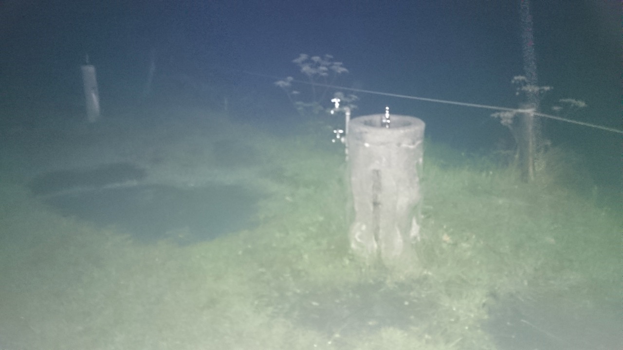 さて、水場はどこかと駐車場で辺りを見回すと、唐突に蛇口が。