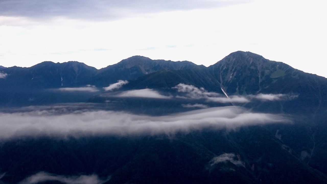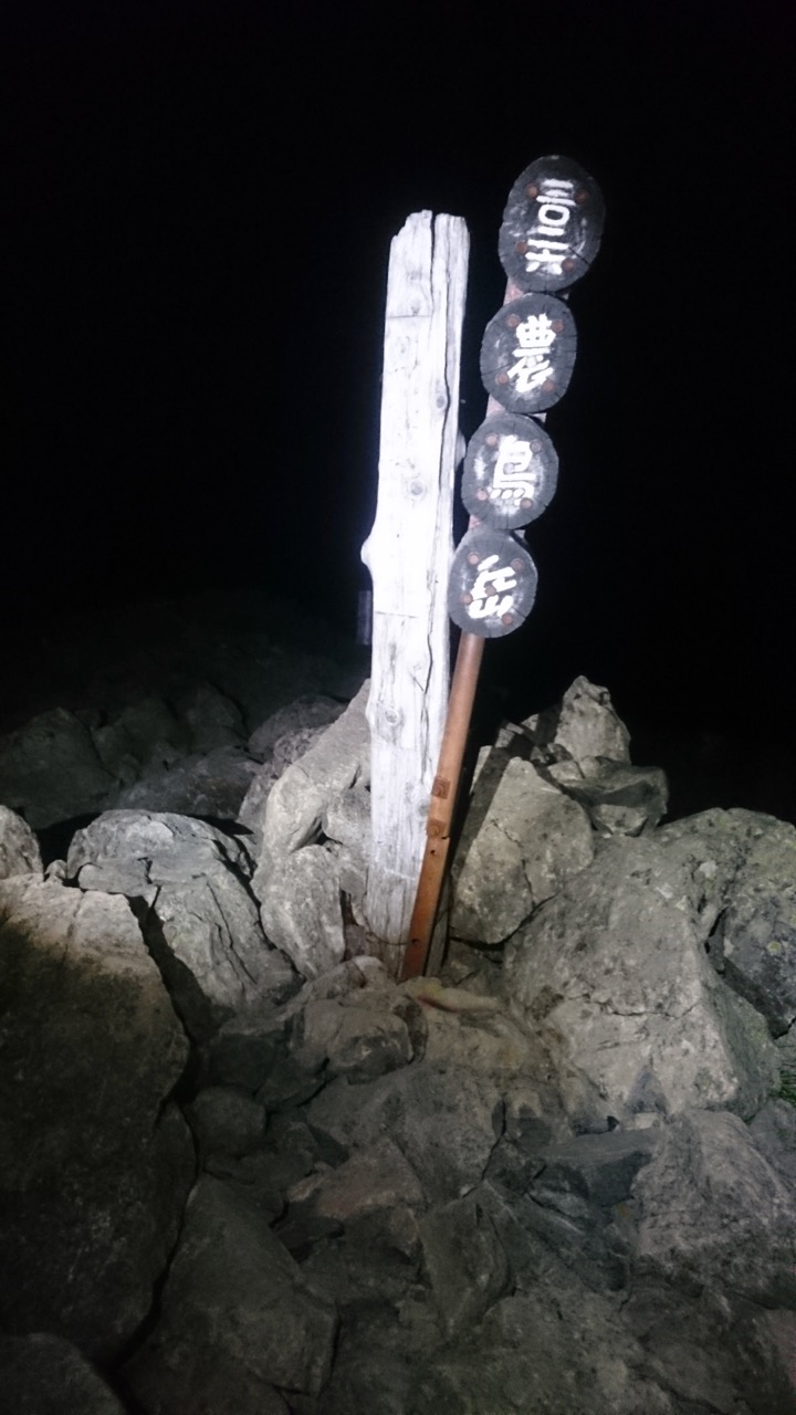 2800mのテン場だけあって、夜は寒かった。化繊ダウン上下+レインウェアでは足らず、最後の砦である筒状レスキューシートまで使って、なんとか凌げる感じだった。2時起きで、3時出発。