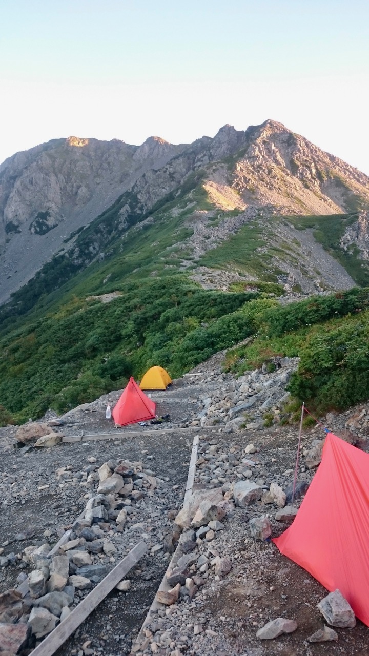 この日のテン場は3張りのみ。ストックシェルターの方と話したり、随分下にある水場に行ったりしつつ、のんびり過ごした。普通にLTE環境だった(DOCOMO)。