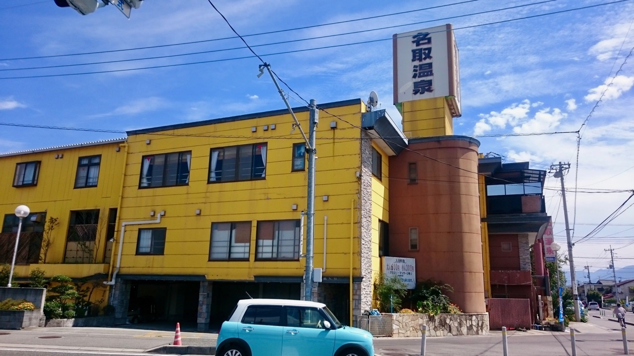 竜王でバスを降りたら近くの温泉でのんびり。これもランニングを頑張ったおかげ。なお、シャワーからも硫黄臭い温泉が出てくる、通向けなところだった。