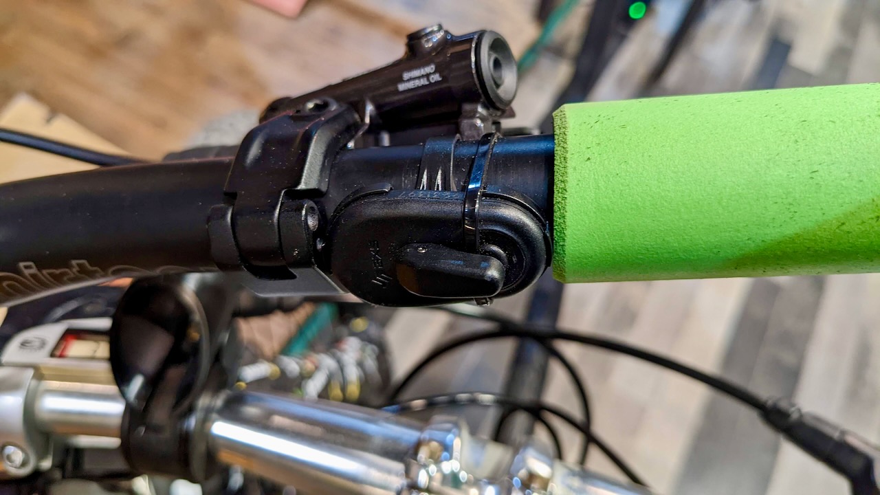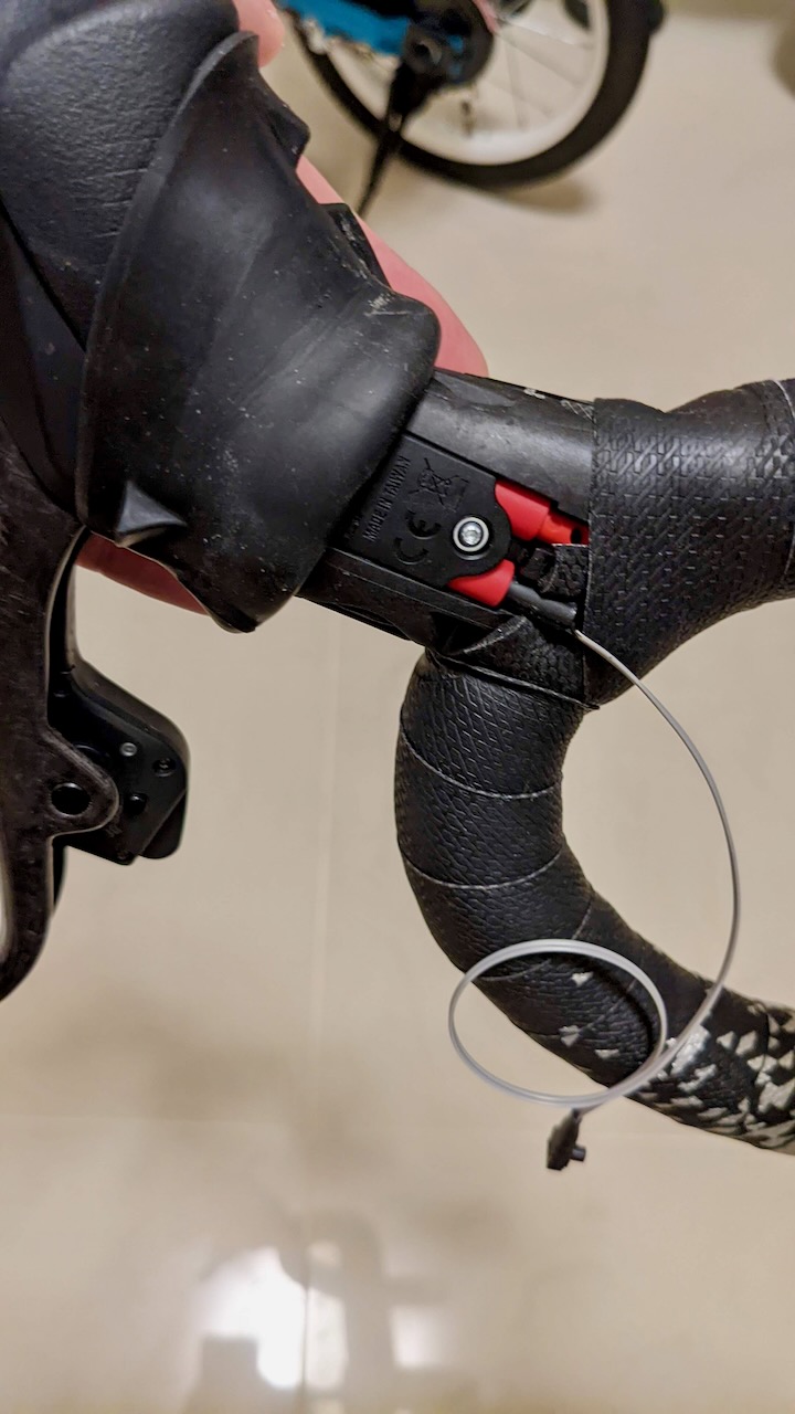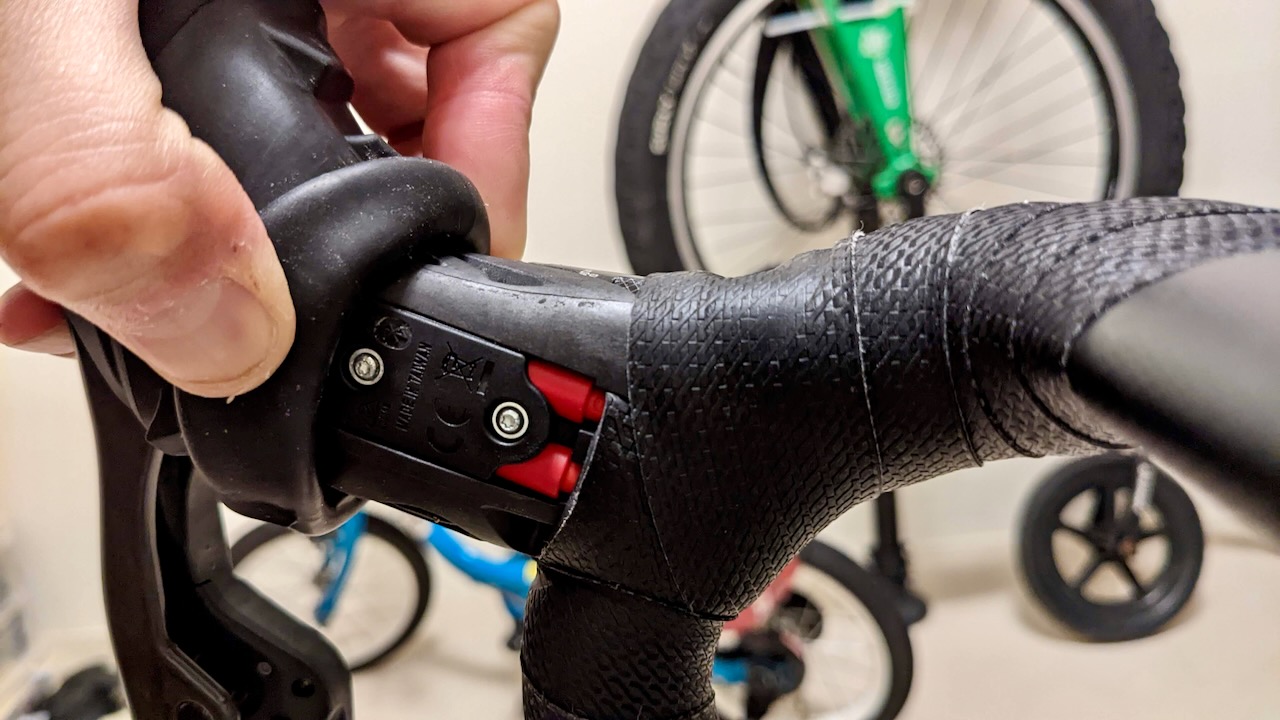 ヒルクライム時にトップハンドルを持つと楽なので、変速できるようにもしました。