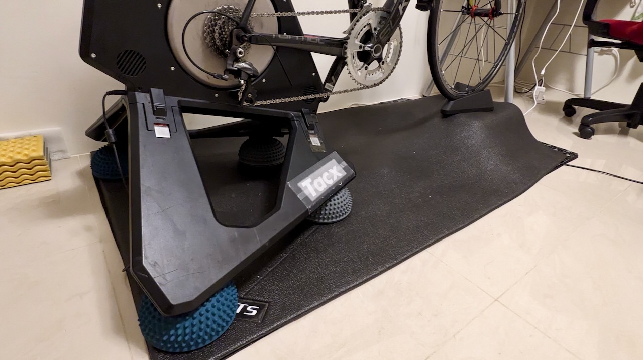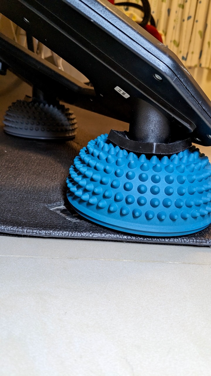 これにTacx neoの足を乗せて…もともと使っていた防振ゴムはそのまま使います。これが無いと足とポッド間の摩擦が稼げず、どんどんズレて最後にはバランスポッドから足が落ちてしまいます。