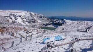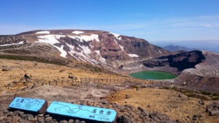 2年ぶりの蔵王、なんとか70分切れてPB更新、参加者が少なかったせいか30代クラス9位でした、18.5km1337mUP/1:09:27 (ログ→strava)。Finish後、熊野岳方面からのお釜。