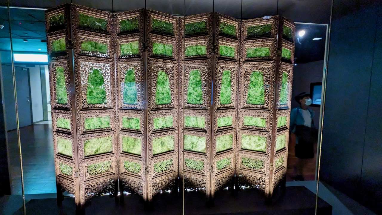 石のチャーシュー、白菜(嘉義にあるので写真のみ)、象牙複層球といった有名どころも素晴らしいですが、書やヒスイなど目を引くものが多くて、全部しっかり見るのに時間と体力使いました。