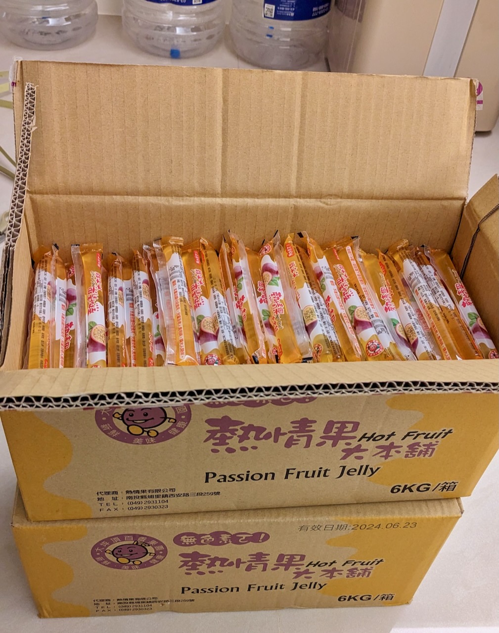 パッションフルーツのゼリー。奥さんのお友達からもらって子供たちと私が大変気に入りました。