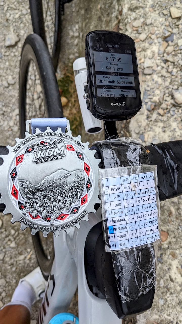 2年前にKOM summerに出た時はCOVID19影響で参加者も少なく寂しい感じでした(もちろん前夜祭も無し)。今回はエントリ776人、さらに半数以上が外国人選手という盛況ぶり。台湾KOMが国際的に人気のイベントだと実感出来たし、そんなイベントに自分が参加しているんだな〜と胸が熱くなりました。