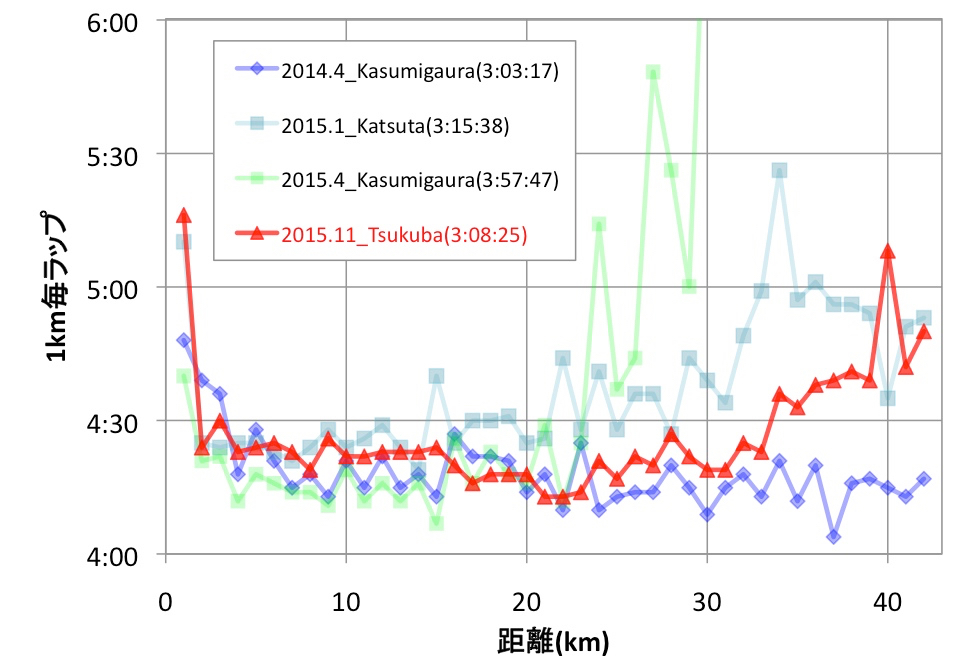 振り返ると院生時の初フルから早5年が経過、迷信だと思っていた3時間の壁はやはり存在するのでしょうか…今シーズンはあと3回あるので、20代最後のまぐれに期待したいと思います。例年、つくばが終わってからスピードが上がってくるので。