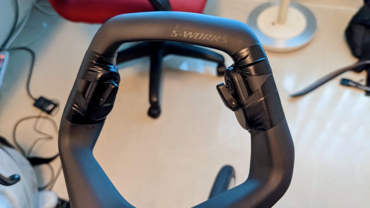 テープ巻いたのはスペシャのお店の人です。左右位置が違いますが、そこは私側でアジャストしました。