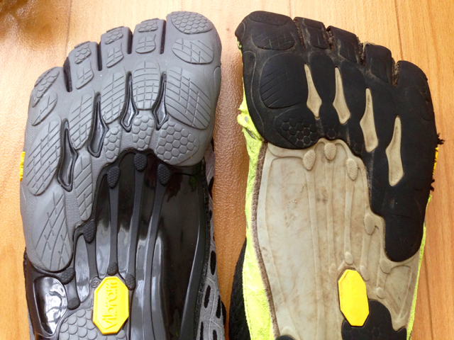 2年使ったソールとの比較。薄くても結構長持ちします。