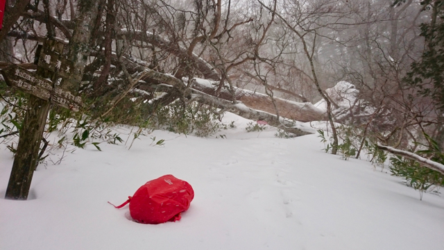 久々の旗坂キャンプ場。自転車をデポして、山装備に変更。下山してきたパーティーによれば三光の宮から先は雪が多いと。