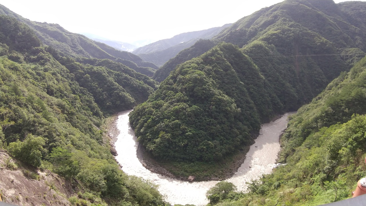 山深い景色。川(大漢渓)の蛇行がすごい。
