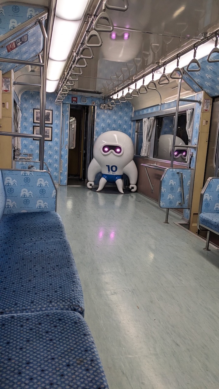 さすがにほぼ人が乗っていない。怪しいマスコットの車両を貸切。