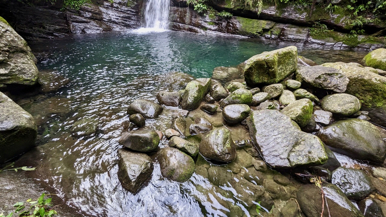 岩が滑って結構危ない。滝壺はそんなに深くなさそうなので、真夏は泳ぐのもいいかも。